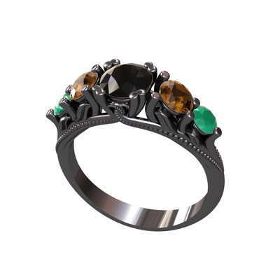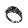 Siyah zirkon, dumanlı kuvars ve kök zümrüt 925 ayar siyah rodyum kaplama gümüş yüzük
