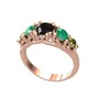 Siyah zirkon, kök zümrüt ve peridot 925 ayar rose altın kaplama gümüş yüzük