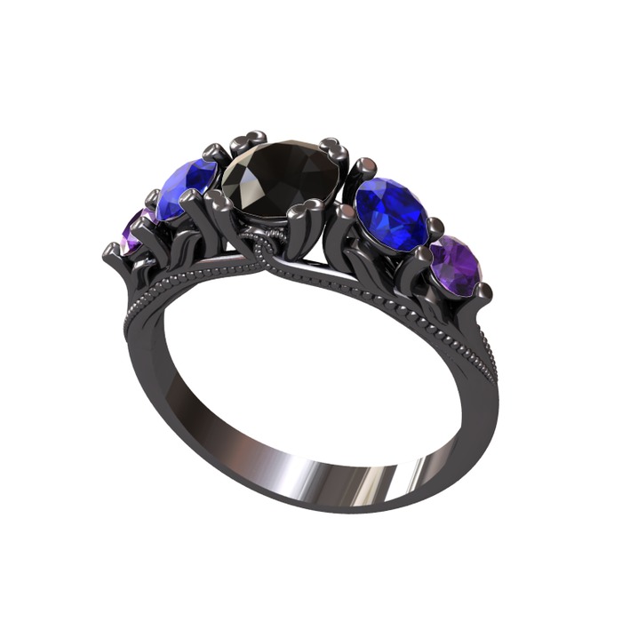 Siyah zirkon, lab safir ve ametist 925 ayar siyah rodyum kaplama gümüş yüzük