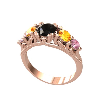 Siyah zirkon, sitrin ve pembe kuvars 18 ayar rose altın yüzük