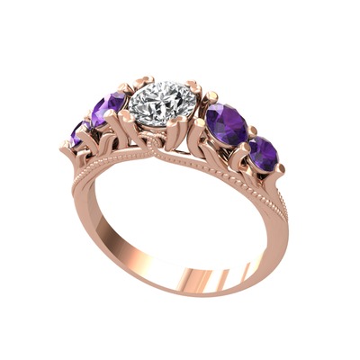 Swarovski ve ametist 925 ayar rose altın kaplama gümüş yüzük