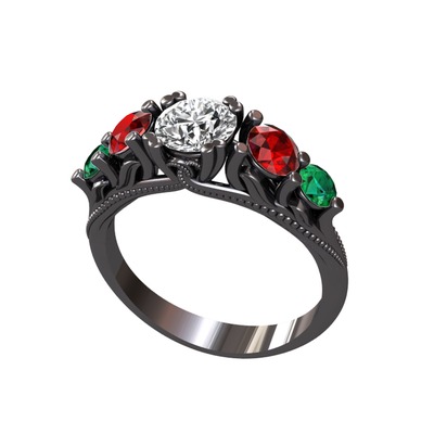 Swarovski, garnet ve yeşil kuvars 925 ayar siyah rodyum kaplama gümüş yüzük