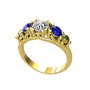 Swarovski, lab safir ve peridot 925 ayar altın kaplama gümüş yüzük