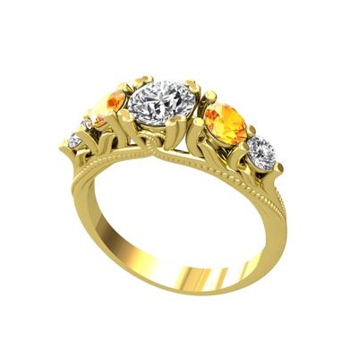 Swarovski, sitrin ve beyaz zirkon 18 ayar altın yüzük