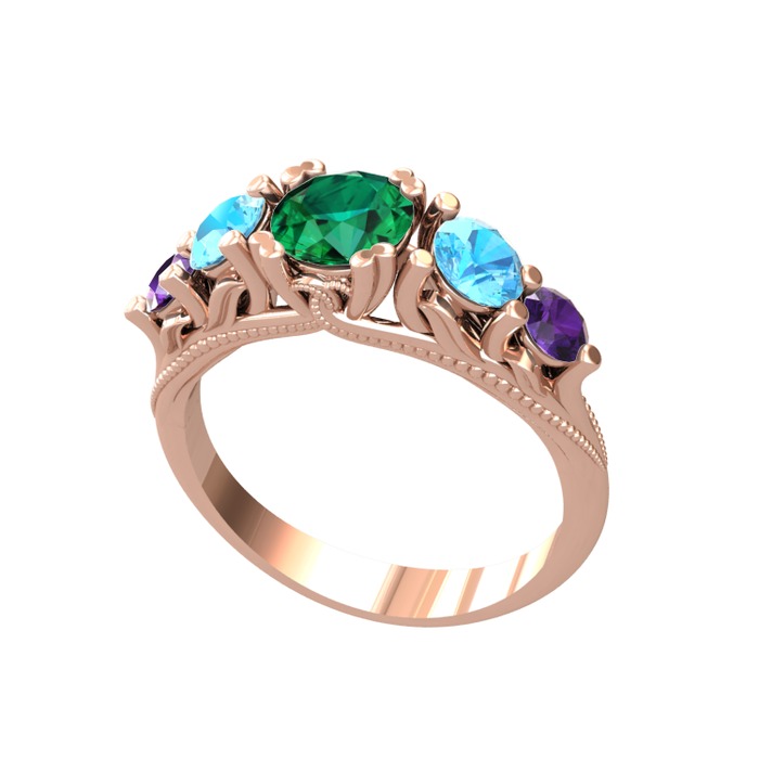 Yeşil kuvars, akuamarin ve ametist 14 ayar rose altın yüzük