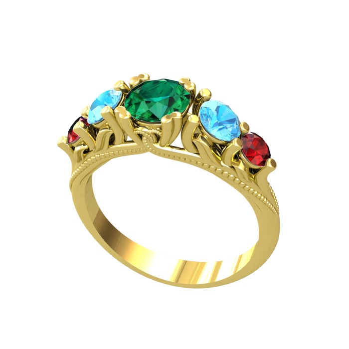Yeşil kuvars, akuamarin ve garnet 8 ayar altın yüzük