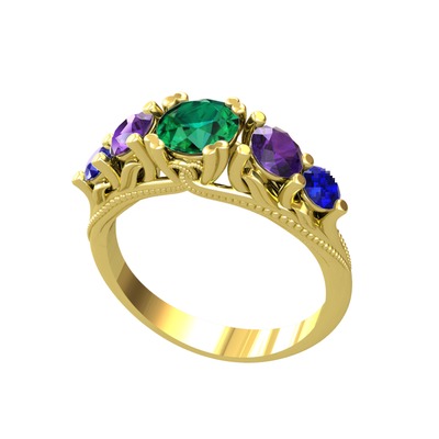 Yeşil kuvars, ametist ve lab safir 14 ayar altın yüzük