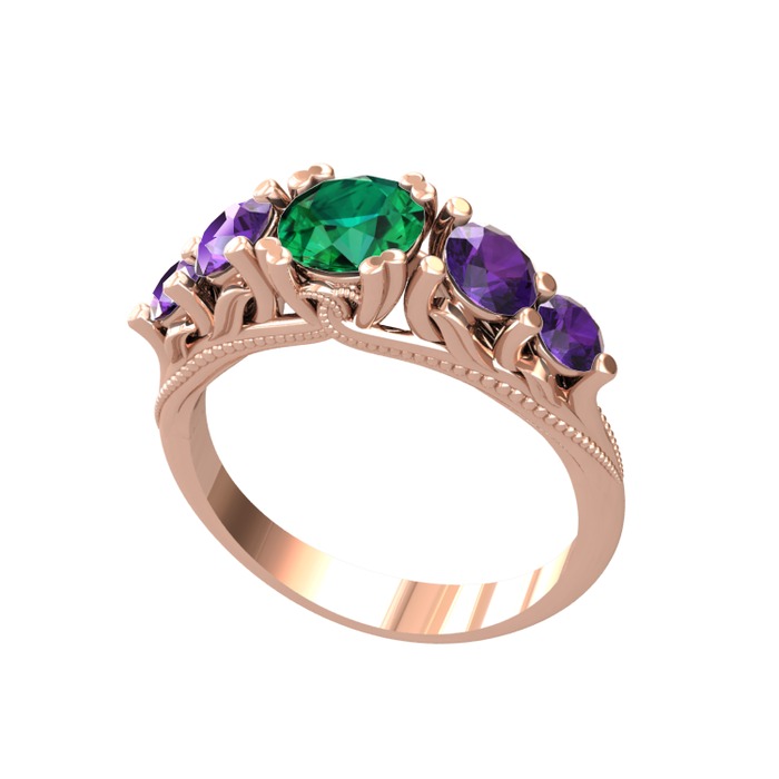 Yeşil kuvars ve ametist 925 ayar rose altın kaplama gümüş yüzük