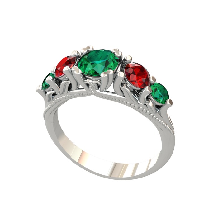 Yeşil kuvars ve garnet 14 ayar beyaz altın yüzük