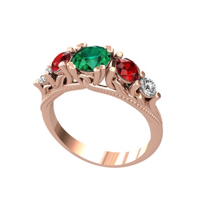 Yeşil kuvars, garnet ve beyaz zirkon 14 ayar rose altın yüzük