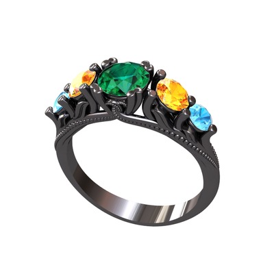 Yeşil kuvars, sitrin ve akuamarin 925 ayar siyah rodyum kaplama gümüş yüzük