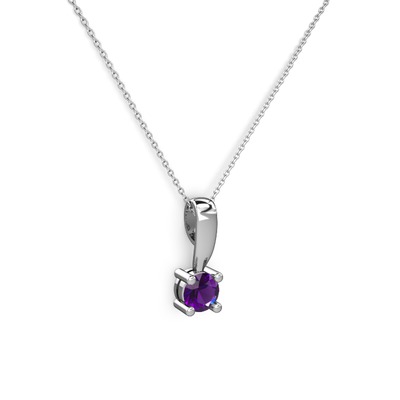 Ametist 18 ayar beyaz altın kolye (40 cm beyaz altın rolo zincir)