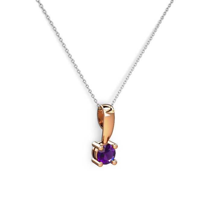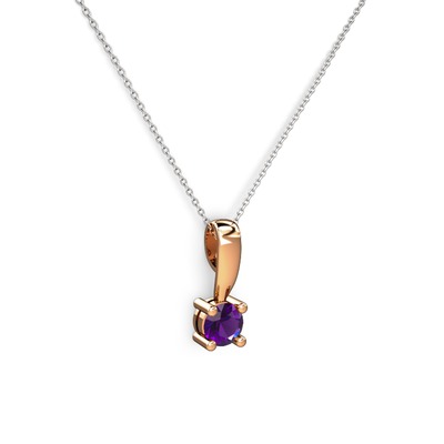 Ametist 18 ayar rose altın kolye (40 cm beyaz altın rolo zincir)