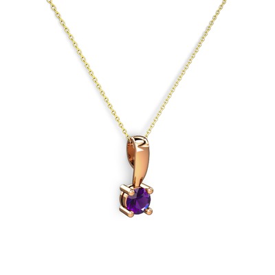 Ametist 8 ayar rose altın kolye (40 cm altın rolo zincir)