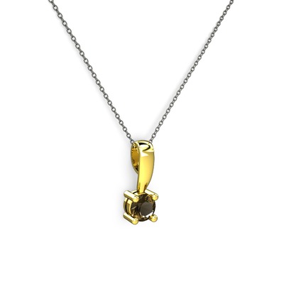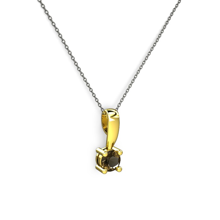 Dumanlı kuvars 18 ayar altın kolye (40 cm gümüş rolo zincir)