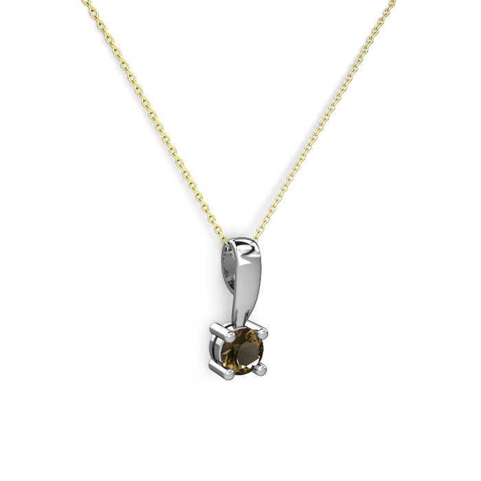Dumanlı kuvars 8 ayar beyaz altın kolye (40 cm altın rolo zincir)