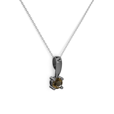 Dumanlı kuvars 925 ayar siyah rodyum kaplama gümüş kolye (40 cm beyaz altın rolo zincir)