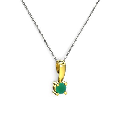 Kök zümrüt 14 ayar altın kolye (40 cm gümüş rolo zincir)