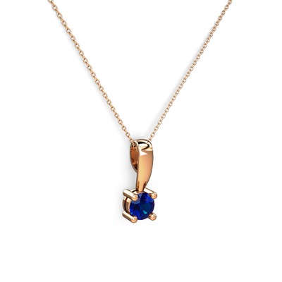 Lab safir 925 ayar rose altın kaplama gümüş kolye (40 cm gümüş rolo zincir)