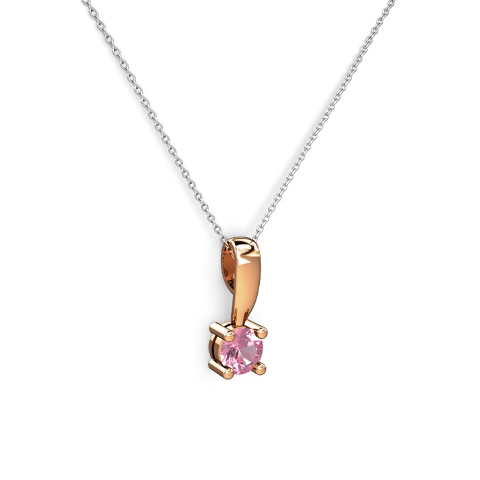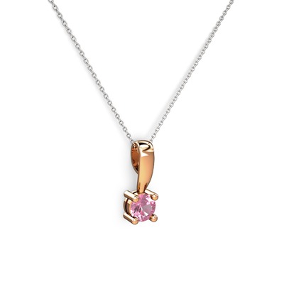 Pembe kuvars 14 ayar rose altın kolye (40 cm beyaz altın rolo zincir)