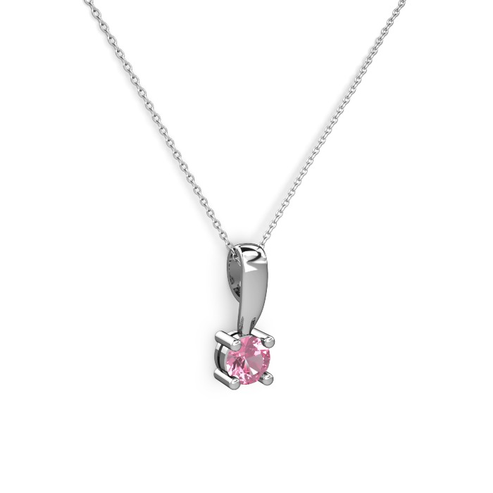 Pembe kuvars 925 ayar gümüş kolye (40 cm beyaz altın rolo zincir)