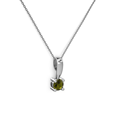 Peridot 14 ayar beyaz altın kolye (40 cm gümüş rolo zincir)