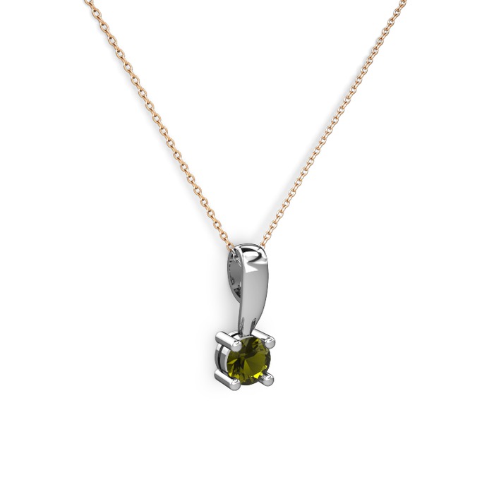 Peridot 18 ayar beyaz altın kolye (40 cm rose altın rolo zincir)
