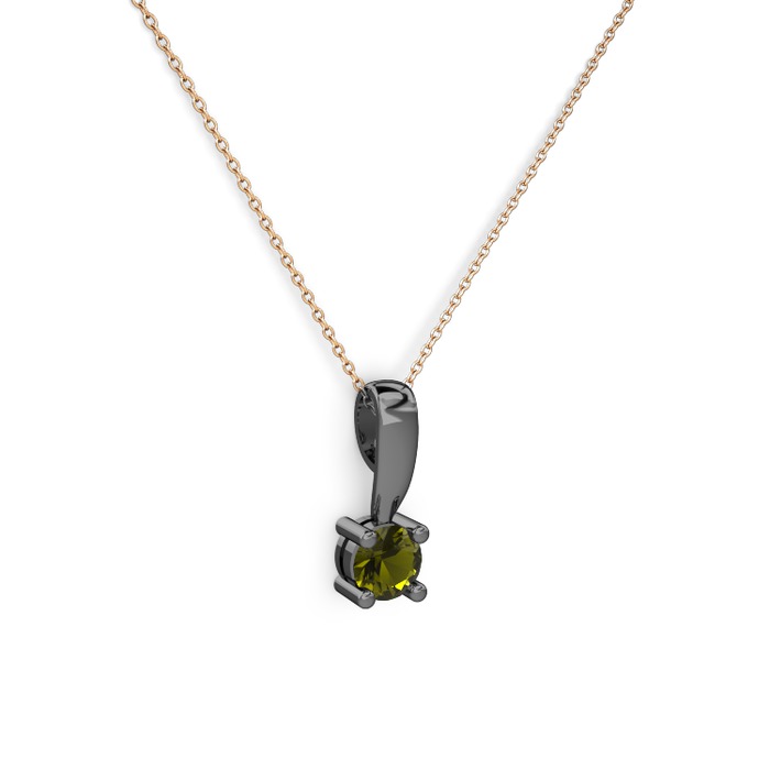 Peridot 925 ayar siyah rodyum kaplama gümüş kolye (40 cm rose altın rolo zincir)