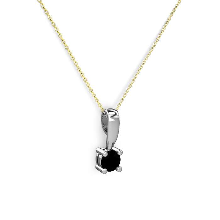 Siyah zirkon 18 ayar beyaz altın kolye (40 cm gümüş rolo zincir)