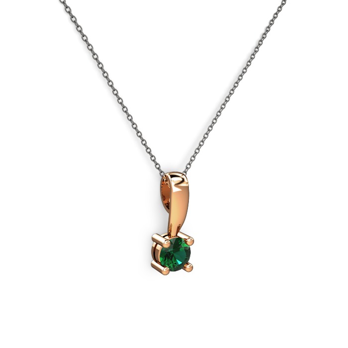 Yeşil kuvars 14 ayar rose altın kolye (40 cm gümüş rolo zincir)