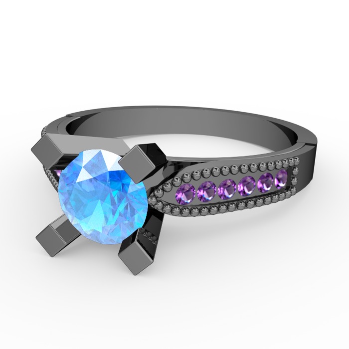 Akuamarin ve ametist 925 ayar siyah rodyum kaplama gümüş yüzük