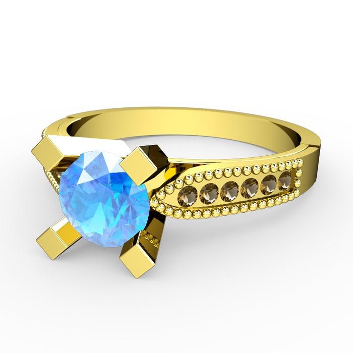 Akuamarin ve dumanlı kuvars 18 ayar altın yüzük