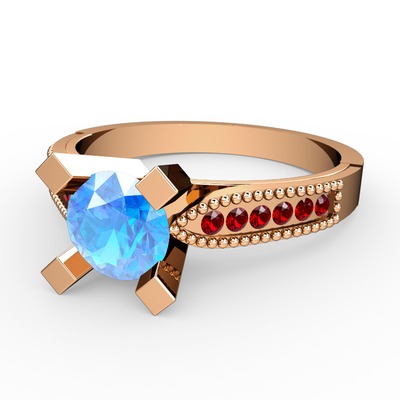 Akuamarin ve garnet 8 ayar rose altın yüzük