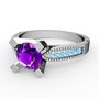 Ametist ve akuamarin 14 ayar beyaz altın yüzük