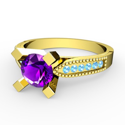 Ametist ve akuamarin 925 ayar altın kaplama gümüş yüzük
