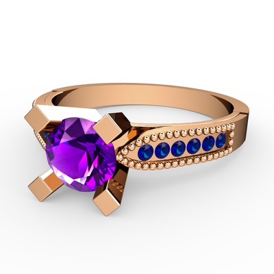 Ametist ve lab safir 925 ayar rose altın kaplama gümüş yüzük