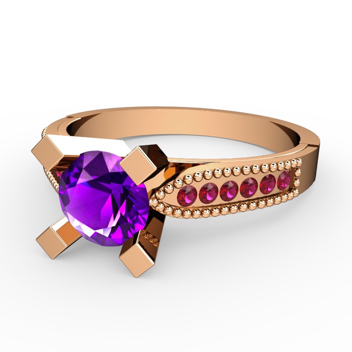Ametist ve rodolit garnet 925 ayar rose altın kaplama gümüş yüzük