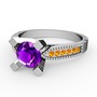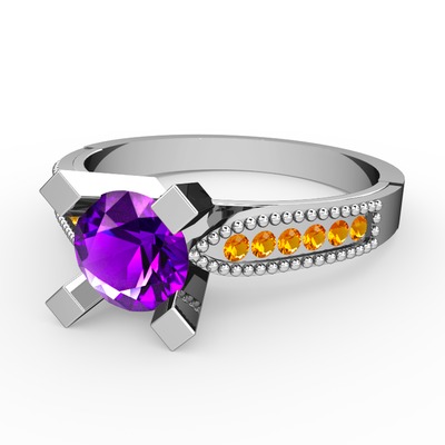 Ametist ve sitrin 14 ayar beyaz altın yüzük