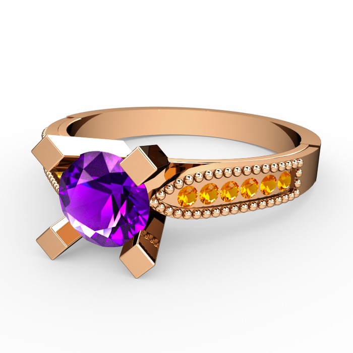 Ametist ve sitrin 18 ayar rose altın yüzük