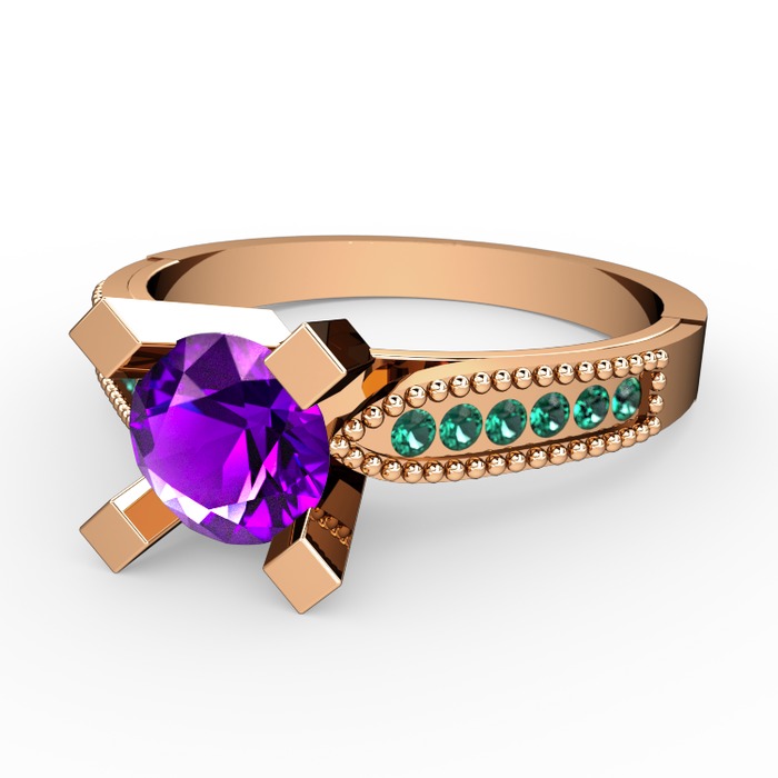 Ametist ve yeşil kuvars 8 ayar rose altın yüzük