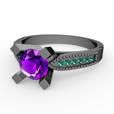 Ametist ve yeşil kuvars 925 ayar siyah rodyum kaplama gümüş yüzük