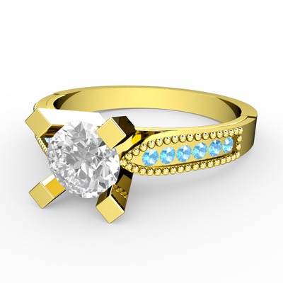 Beyaz zirkon ve akuamarin 925 ayar altın kaplama gümüş yüzük