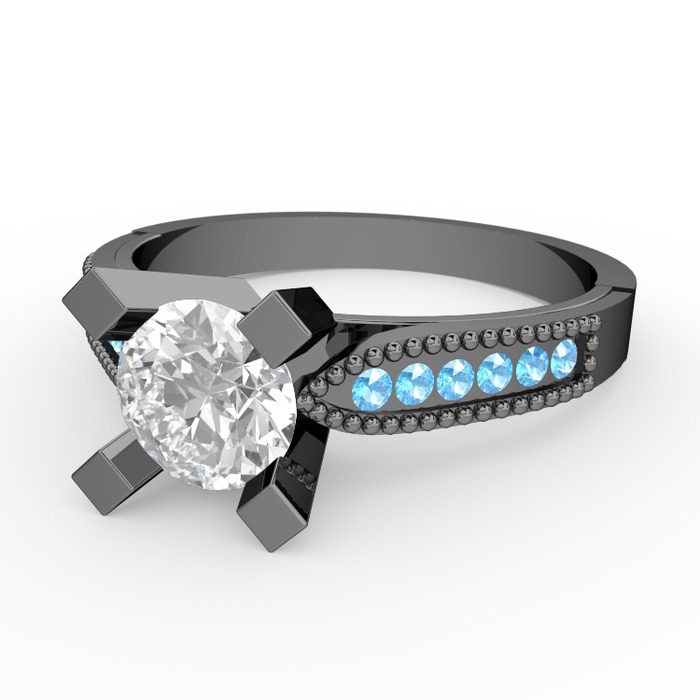 Beyaz zirkon ve akuamarin 925 ayar siyah rodyum kaplama gümüş yüzük