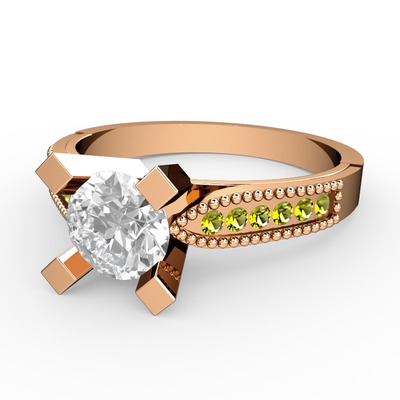 Beyaz zirkon ve peridot 8 ayar rose altın yüzük