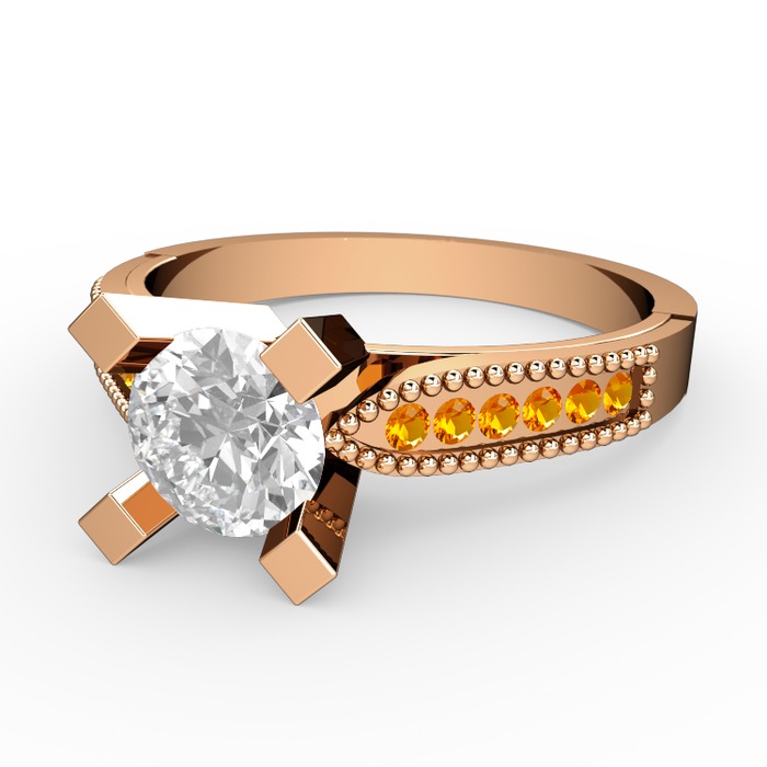 Beyaz zirkon ve sitrin 18 ayar rose altın yüzük