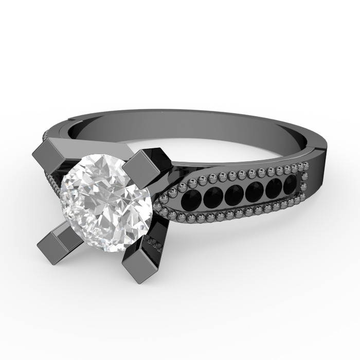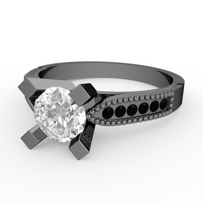 Beyaz zirkon ve siyah zirkon 925 ayar siyah rodyum kaplama gümüş yüzük
