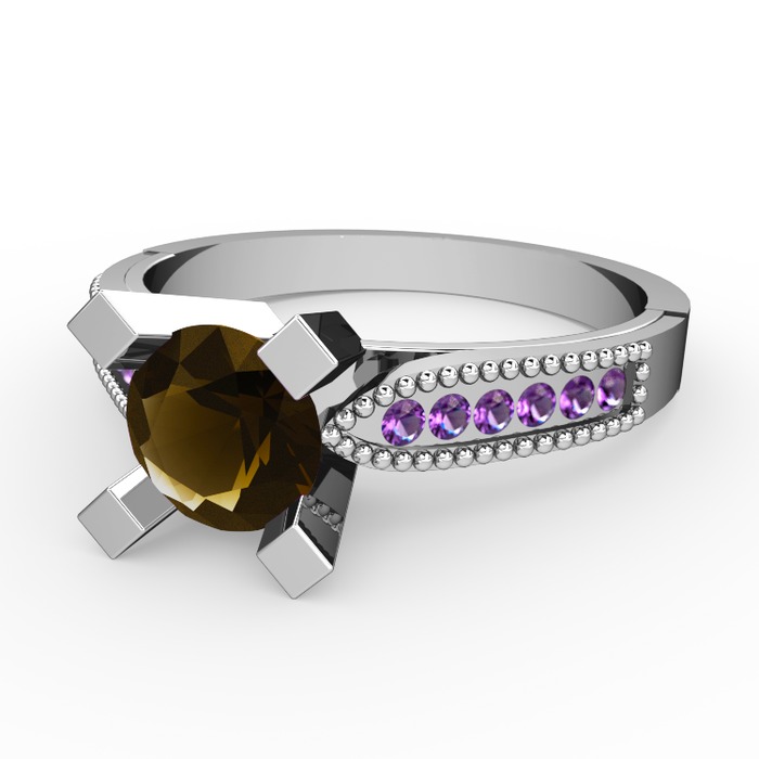 Dumanlı kuvars ve ametist 925 ayar gümüş yüzük