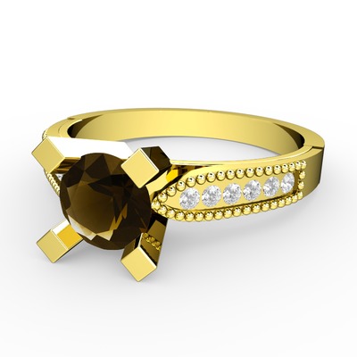 Dumanlı kuvars ve pırlanta 14 ayar altın yüzük (0.132 karat)