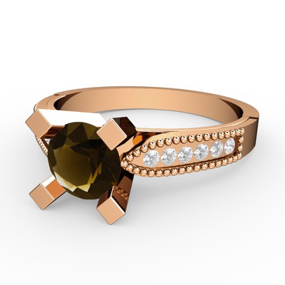 Dumanlı kuvars ve pırlanta 8 ayar rose altın yüzük (0.132 karat)