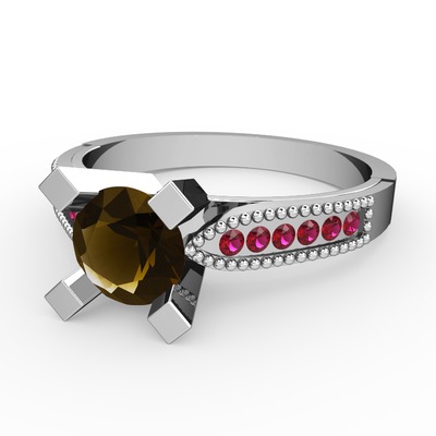 Dumanlı kuvars ve rodolit garnet 925 ayar gümüş yüzük